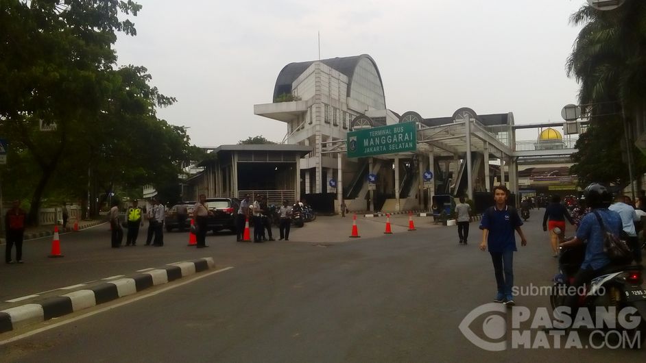 Jalan Tambak kembali ditutup yang disebabkan warga Manggarai tawuran polisi masih berjaga.