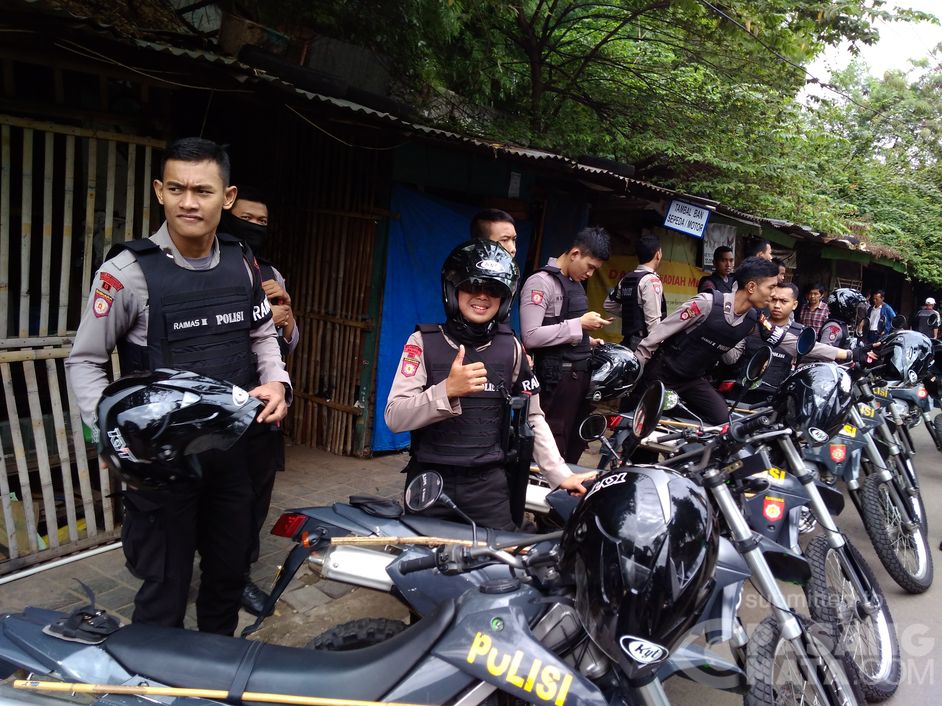 Anggota Patmor Polda Metrojaya masih berjaga di Manggarai dan Tambak pkl 09:15
