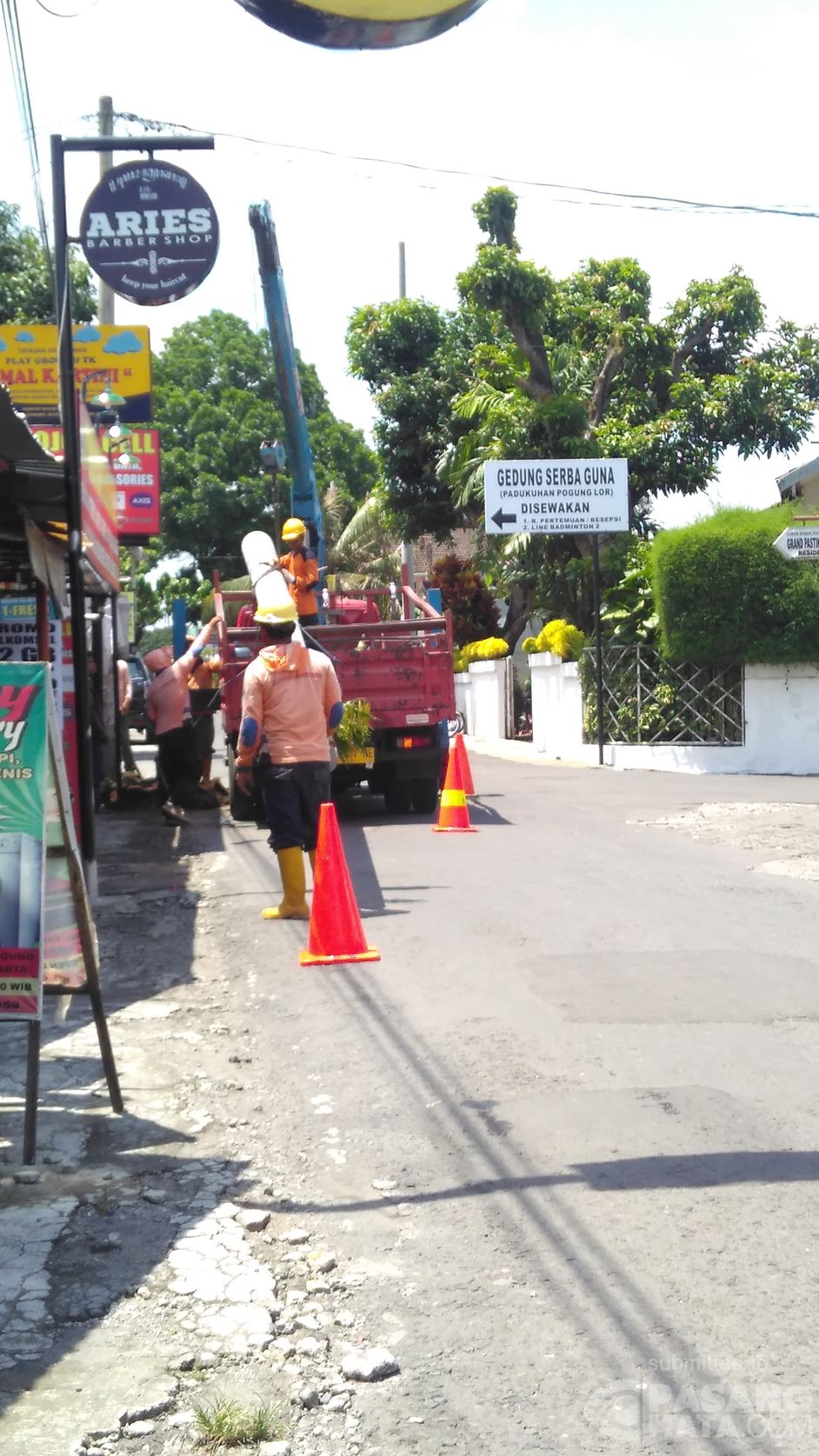 Hati-hati di Jalan Pandega Marta, Sleman sedang ada penggantian tiang listrik.
