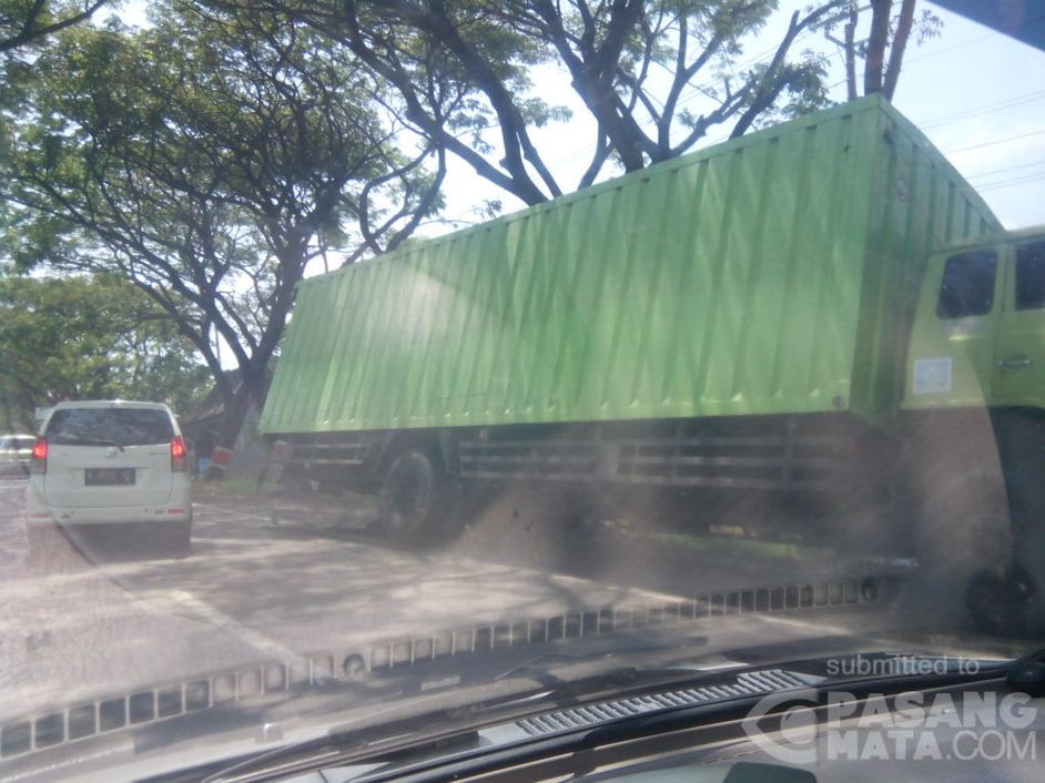 Ada Truk Terperosok Sampai Miring Dilobang Bekas Galian Kabel, di Jl Gajah Mada Purwodadi