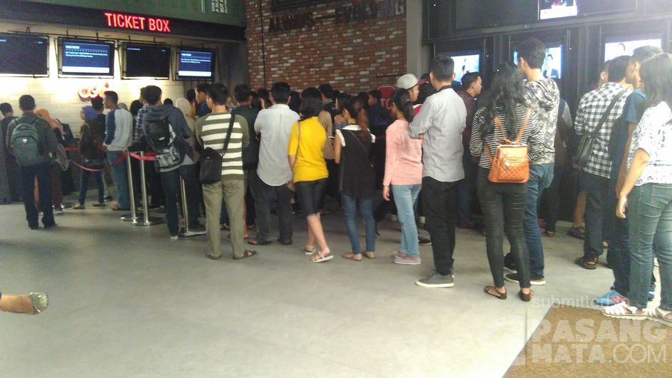 Tampak antrean panjang, di depan loket bioskop Mall J Walk Yogyakarta, antrean ini untuk mendapat tiket film fast furious 8