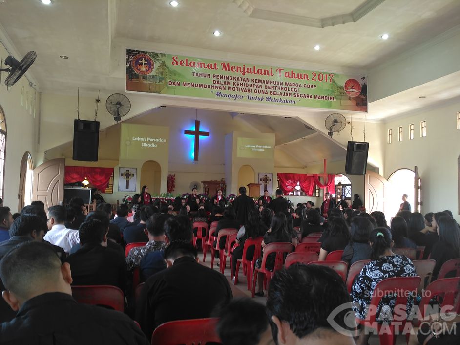 Acara kebaktian Jumat Agung di GBKP Batu Aji berlangsung dengan hikmat dan aman