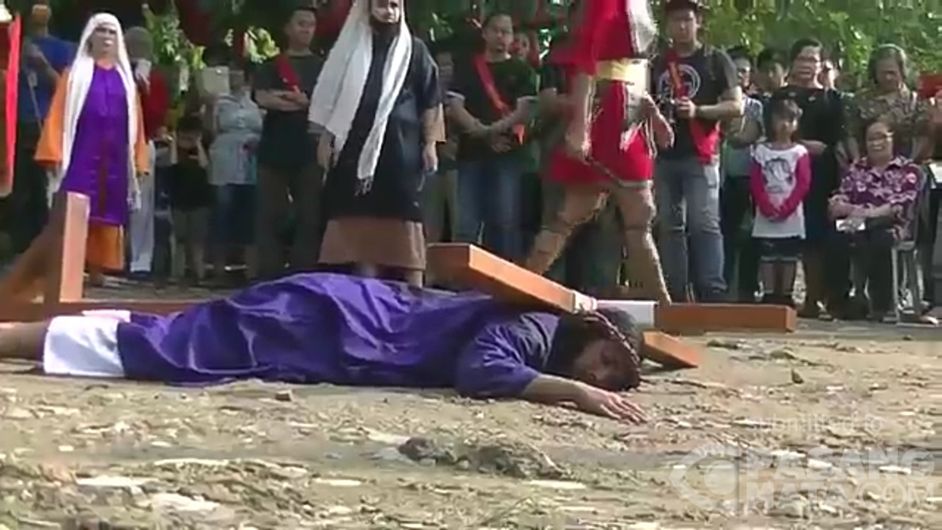 Perayaan Paskah yang dilakukan jamaat Gereja Santo Nikodemus, Rempoa, Ciputat, Tangerang Selatan dengan menggelar visualisasi Wafatnya Isa Almasih yang disaksikan sekitar seribu jamaat Gereja, Jumat pagi ini. Dalam kegiatan sakral tersebut, jamaat gereja diajarkan bentuk pengorbanan yang dilakukan Yesus untuk menebus dosa Umatnya.
