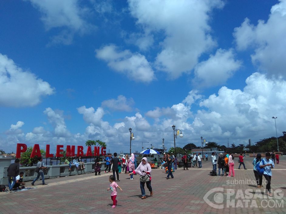 Kamis (29-06-2017) Siang ini taman kota pinggir sungai musi ramai pengunjung. Lokasi: Jalan Doktor AK Gani Palembang