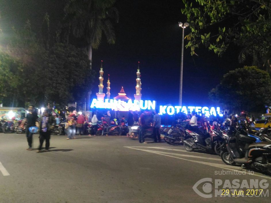 Hingga tengah malam Alun-alun Kota Tegal tampak masih ramai pengunjung.