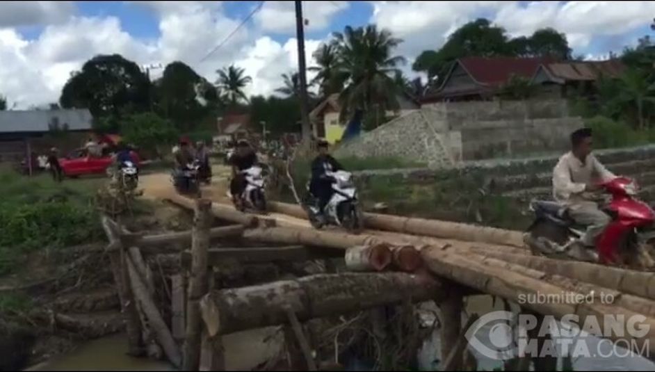 Jembatan darurat di Desa Talinduka Kecamatan Dangia Kabupaten Kolaka Timur membahayakan pengguna jalan. Belum ada perbaikan dari pemerintah setempat