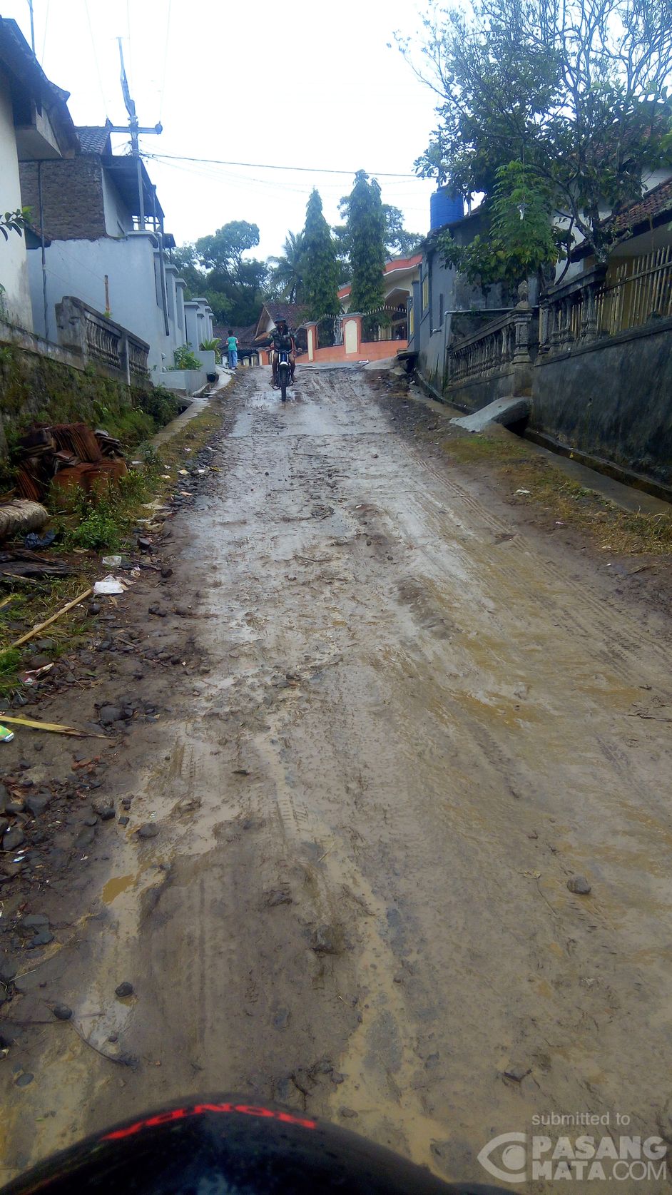 Jalan rusak, dan licin bila hujan, banyak dikeluhkan oleh warga yang setiap hari melalui jalan di Kp Panglepa, Desa Banyurasa, Kecamatan Sukahening, Kab Sumedang. Warga sekaligus meminta bupati Tasikmalaya UU Ruzhanul Ulum bisa segera memperbaikinya. Minggu (8/7)