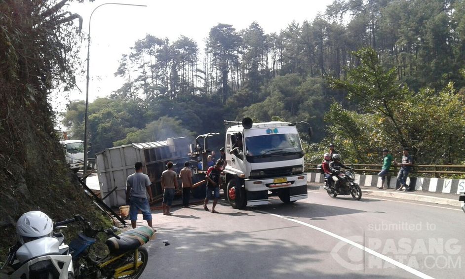 Kemacetan di Jln Cadas Pangeran Sumedang mengakibatkan macet yang panjang dari arah Bandung menuju Cirebon maupun sebaliknya hal ini di karenakan truck fuso yang mengakut pasir terguling ke badan jalan sehingga menutup sebagian jalan saat ini.