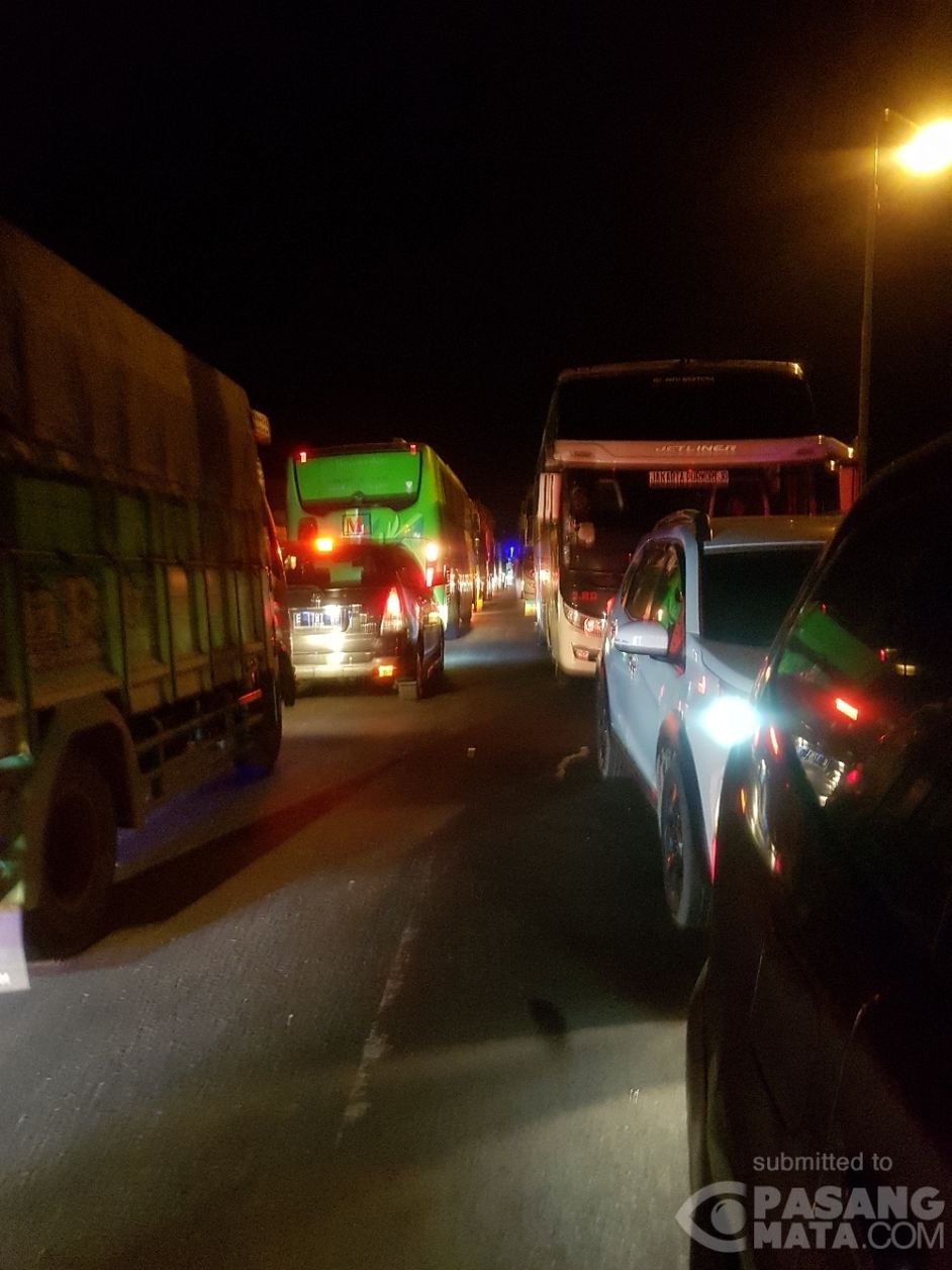 Akibat buka-tutup lalin pembangunan flyover kretek, jalur brebes-banyumas macet berjam-jam. jarak 1.2km ditempuh lebih dari 1 jam.