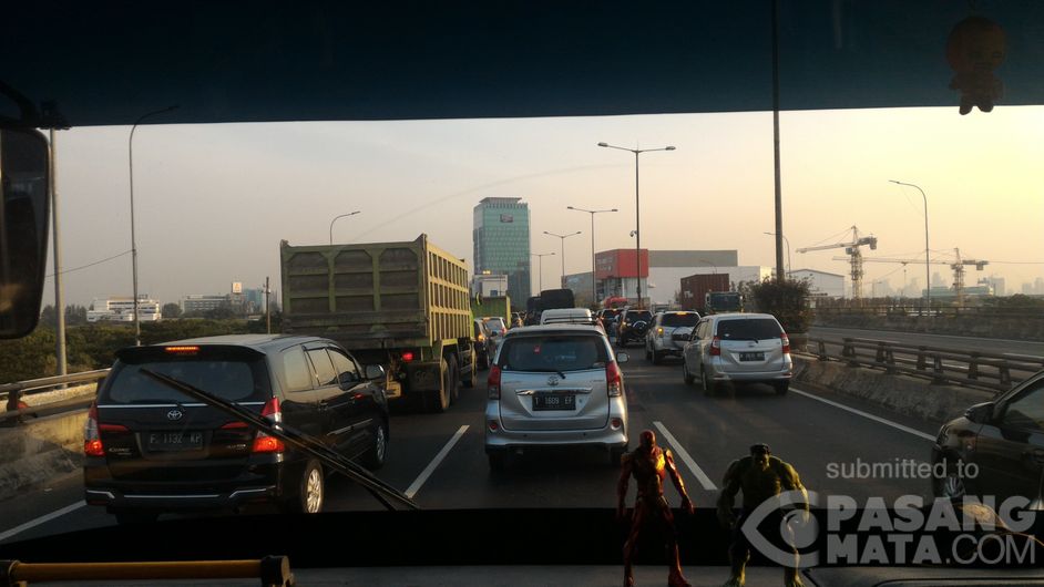 Tol Wiyoto Wiyono arah Cawang padat cenderung berhenti seberang Cempaka Mas