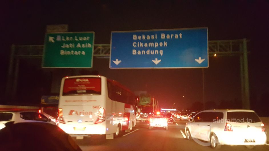 Tol Jakarta Cikampek, Jatiasih ke arah Bekasi Barat padat merayap cenderung berhenti.