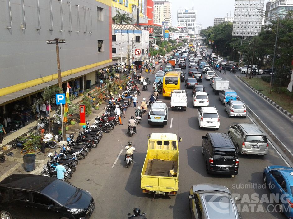 Suasana lalu lintas siang hari ini di jl Hayam wuruk (depan Hwi lindeteves) arah Harmoni terpantau padat