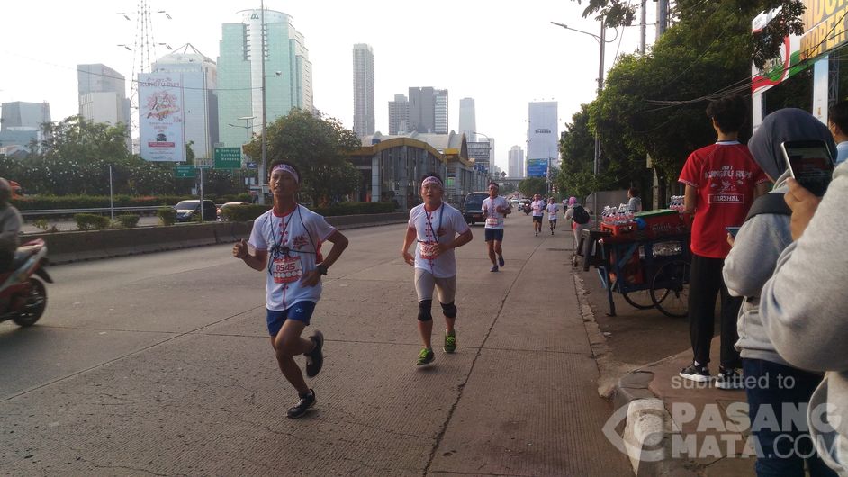 Peserta Kung Fu Run mulai menyusuri jalanan. Di bawah matahari yang masih bersinar lembut, puluhan peserta menjejakkan kaki. Berolahraga sekalian berdonasi