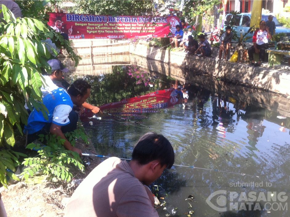 Saluran air di tengah Perumahan Durenjaya kota Bekasi ini menjadi arena lomba memancing untuk memperingati HUT RI ke-72. Sebelum dilakukan normalisasi, saluran air ini kerap jadi penyebab banjir dimusim penghujan.