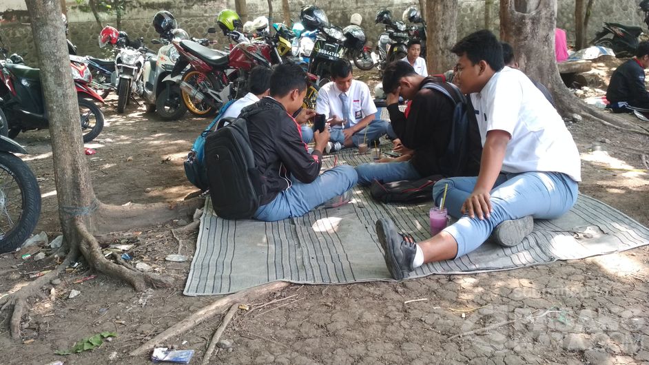 Mirissss. Bukannya mengikuti pelajaran disekolah, siswa-siwi ini malah bolos dan asyik-asyikan nongkrong di taman Gor saat jam sekolah sedang berlangsung.
