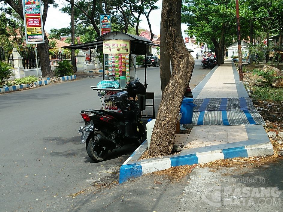 Para pejalan kaki diharapkan mengucap permisi dan sedikit membungkuk saat melewati trotoar di jalan Pramuka, Barat stadion Batoro Katong Ponorogo. #RamahTrotoar