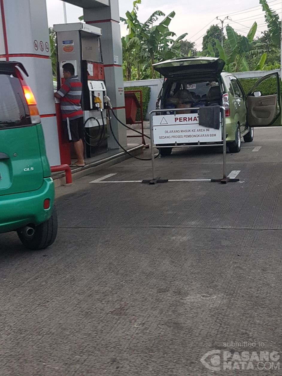 Pengisian Bahan Bakar Minyak (BBM) di beberapa jerigen pada mobil avanza F 1163 GO. Lokasi Jalan Baru Kemang, Bogor.
