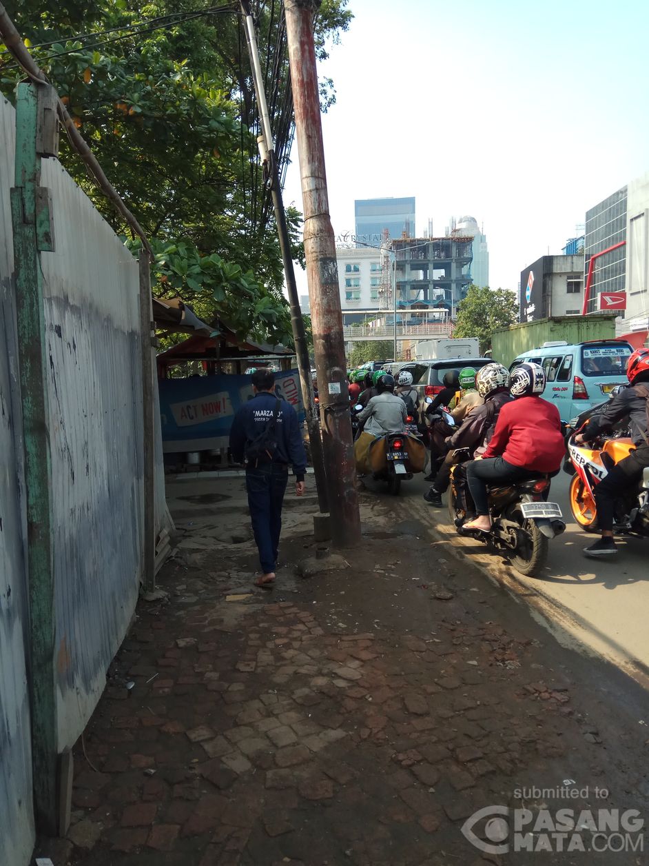 Trotoar sepanjang arah stasiun Karet menuju Citywalk banyak yang digunakan menjadi warung, tambal ban dll. Ada yang tanah merah sehingga pejalan kaki sangat tidak nyaman dan harus ikut berebut jalan dengan kendaraan bermotor di beberapa spot