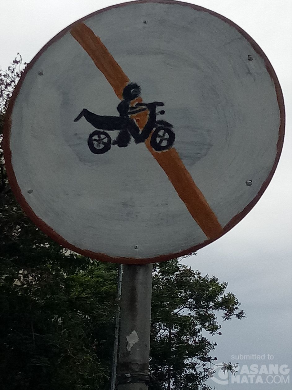 Saya kena tilang karena disangka melanggar rambu larangan masuk jalur cepat, Lokasi jalan Benyamin Sueb Tanjung Priok, dekat bundaran patung ondel-ondel, saya nggak masalah ditilang, cuma bingung saja, kok ada rambu lalu lintas yg dilukis? Bukannya dicetak oleh Dishub? Kesan saya rambu itu liar.