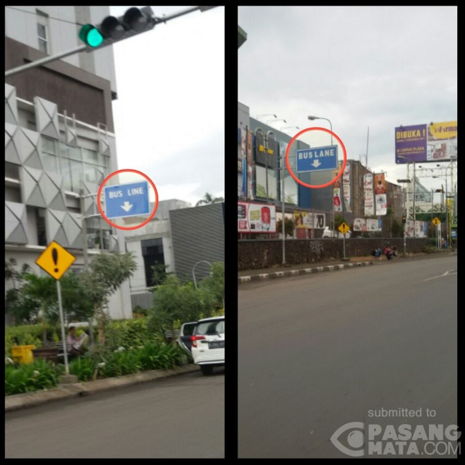 Wah, ada yang aneh campur kocak dengan plank rambu lalin petunjuk ini! Tepat di jantung kota Bekasi di Jalan Ahmad Yani, ternyata ada 2 plank rambu petunjuk lalin dengan 1 makna. Hayooo, mana yang benar 'Bus Line' atau 'Bus Lane'?