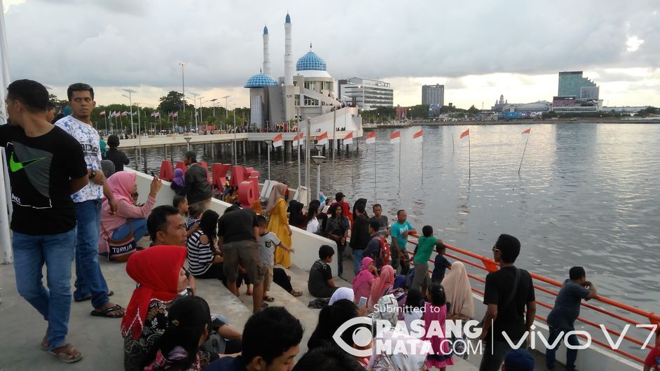 Pantai Losari di sepanjang Jl Penghibur Kota Makassar, Sulsel, Indonesia, menjadi andalan destinasi 'Kota Daeng' ini. Saat ini Losari kian berdandan setelah berdiri anjungan dari 4 etnis besar: Bugis, Makassar, Toraja, Mandar termasuk mesjid terapung. #IndonesiaKeren