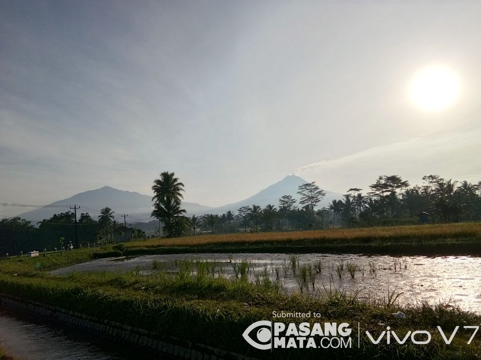 06.30 WIB, Pemandangan gunung Merapi dan Merbabu yang sejak dahulu hingga sekarang masih saja menjadi pemandangan favorit yang di gambar oleh anak-anak TK. Yaitu 2 gunung, jalan, sawah dan rumah. #IndonesiaKeren