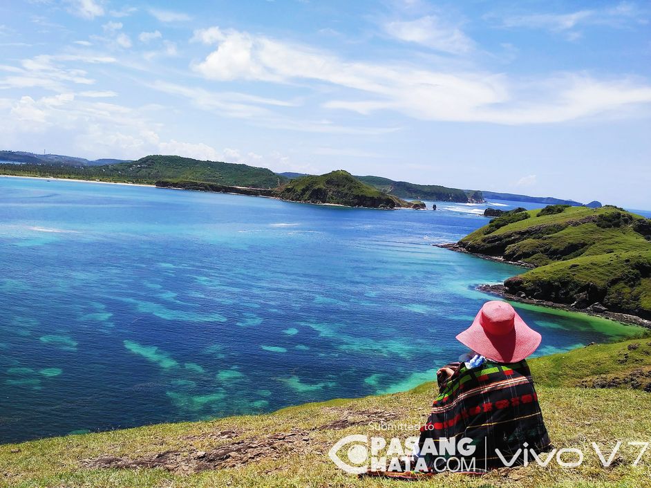 Memandang hamparan laut biru di atas bukit Merese, Lombok, NTT. Dari dulu, Lombok memang terkenal dengan wisata lautnya. Pengunjung bisa bersantai sembari menanti sunrise di sini. #indonesiakeren