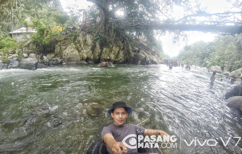 Mandi pake ban di Sungai Batang Bayang di Painan. Uniknya di sini ada jembatan akar yang dibentuk oleh dua batang beringin yang berada berseberangan yang dipisahkan oleh sungai. #IndonesiaKeren