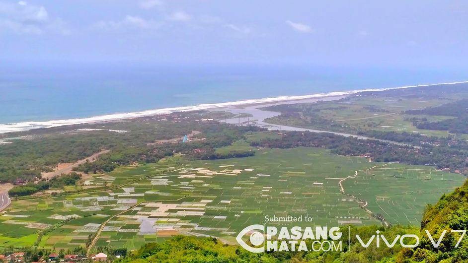 Hamparan Sawah dari Goa Jepang Puncak Surocolo. Dari atas puncak Anda akan menyaksikan garis pantai selatan Yogyakarta yang begitu panjang mulai dari Pantai Baru, Pantai Samas, Pantai Depok dan Pantai Parangtritis. Akses jalan untuk menuju puncak ini cukup berbahaya, apalagi jika menggunakan mobil tidak disarankan.