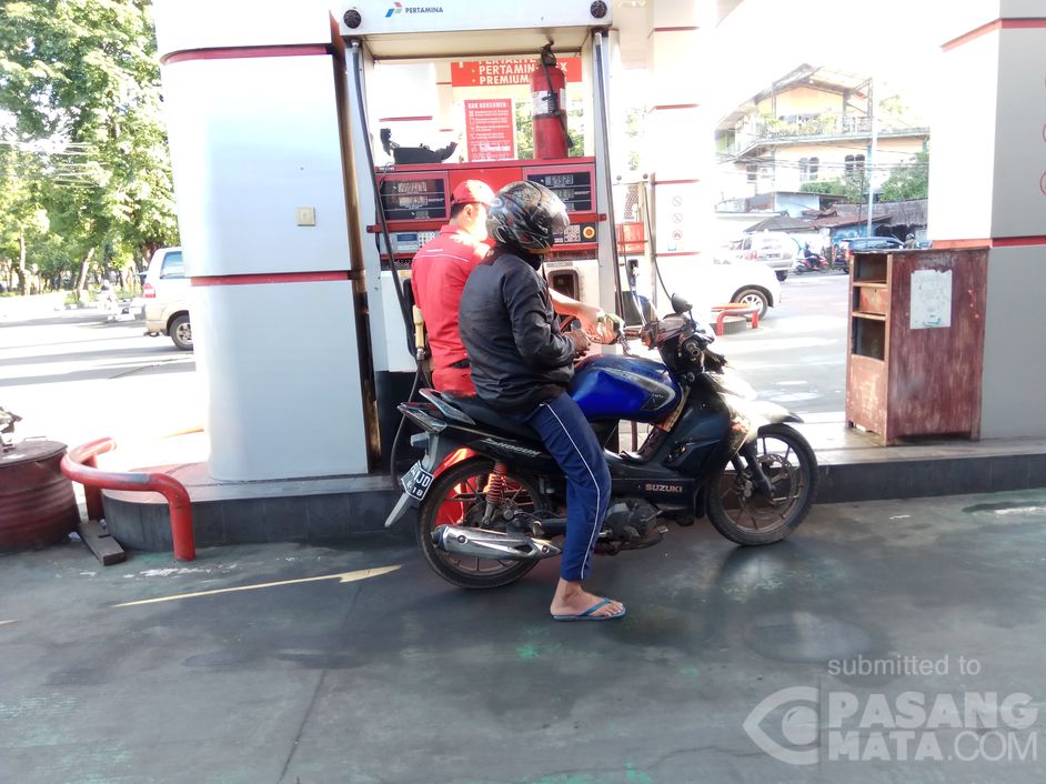 Segala cara dilakukan untuk melakukan kecurangan mengisi BBM di SPBU. Tampak motor dengan tangki bahan bakar yang tidak wajar sedang mengisi BBM jenis Premium di SPBU yang berlokasikan di Jl. Minangkabau, Setiabudi, Jakarta Selatan, Sabtu (10/2).