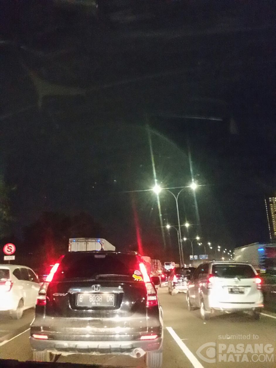 Malam ini kondisi Tol JORR Km. 18 ruas Bintaro arah Cilandak tampak padat merayap