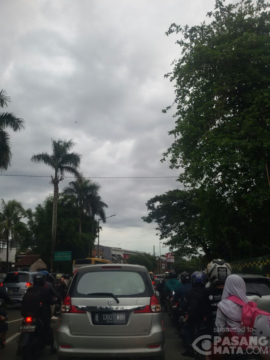 Kondisi arus lalu lintas di Jl. Lenteng Agung Raya arah Stasiun Tanjung Barat tampak padat merayap