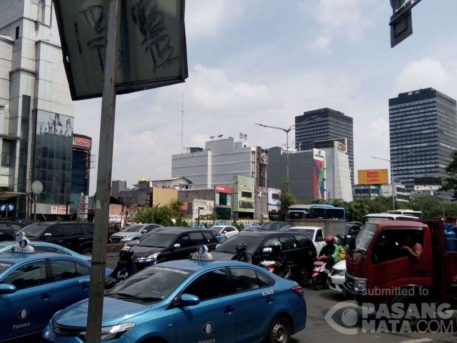 Sesaat sebelum jam makan siang, lalu lintas di jalan Sudirman terlihat ramai siang ini. Kawasan ini merupakan pusat perkantoran di Ibukota Jakarta.