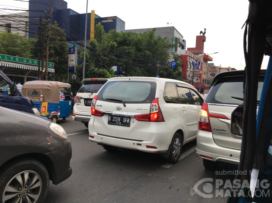 16.15 WIB: Lalu lintas di Jl Juanda Jakarta Pusat padat merayap imbas dari demo taksi online.