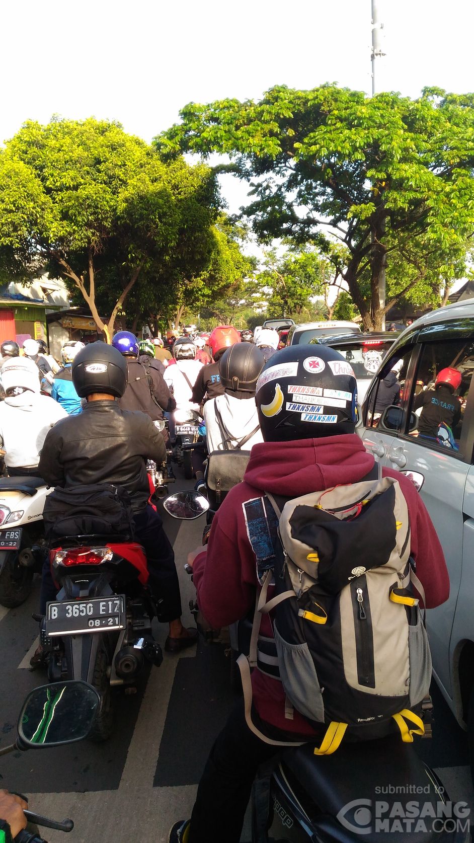 Situasi dan kondisi arus lalu lintas di Jl Juanda menuju Jl Margonda, Depok tampak padat merayap pagi ini