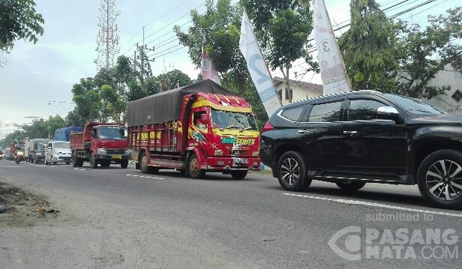 Kemacetan sepanjang hampir 3 Km di Jalan Basuki Rahmad, Kota Madiun, diakibatkan pengalihan arus lalu lintas dan pengamanan kegiatan Presiden RI Joko Widodo, dalam rangka peresmian Jalan Tol Mantingan - Kertosono, di Bagi, Madiun, Jawa Timur, Kamis (29/3/2018)