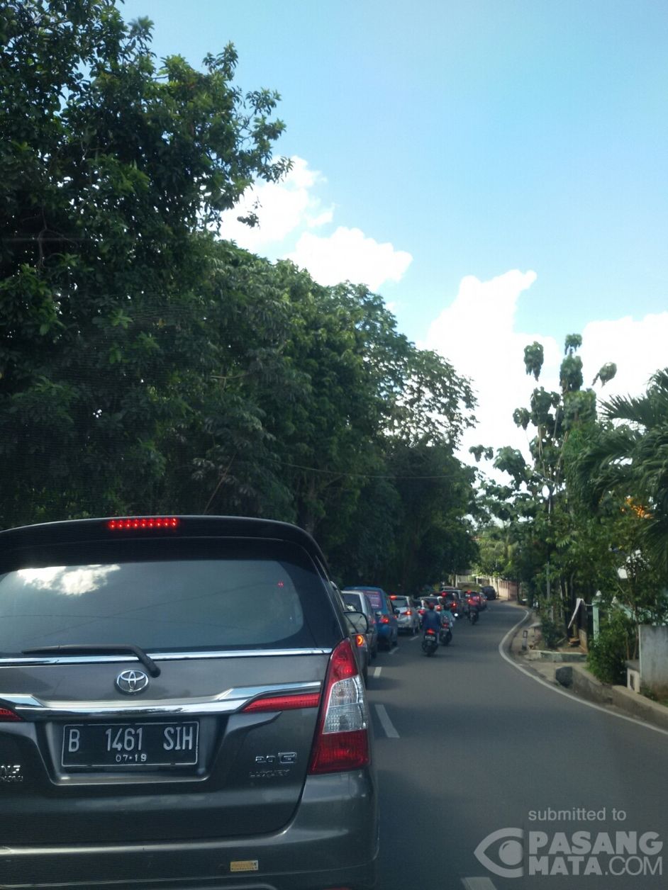 Tampaknya tak ada tanggal merah untuk kemacetan arus lalu lintas di jalur ini. Tampak antrean panjang kendaraan hiasi Jl. Moch. Kahfi II ruas Jagakarsa arah ke Lenteng Agung.