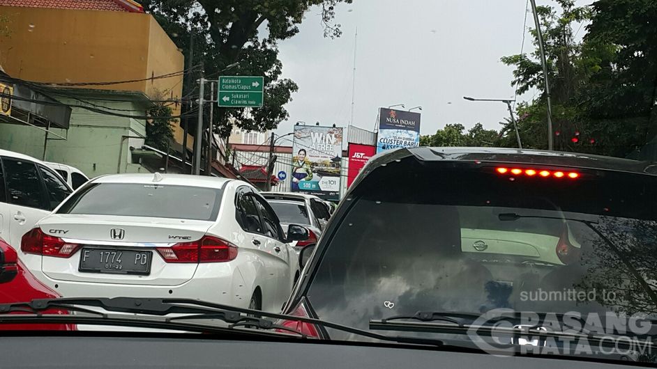 jl otista menuju jl surya kencana bogor siang ini tersendat. lokasi sekitar tugu kujang kebun raya bogor