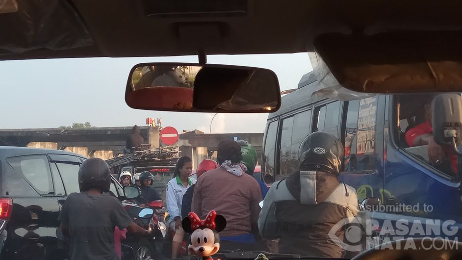 Macet di pintu masuk Perimeter Utara (belakang Bandara Soetta), tidak ada petugas yang mengatur lalu lintas.