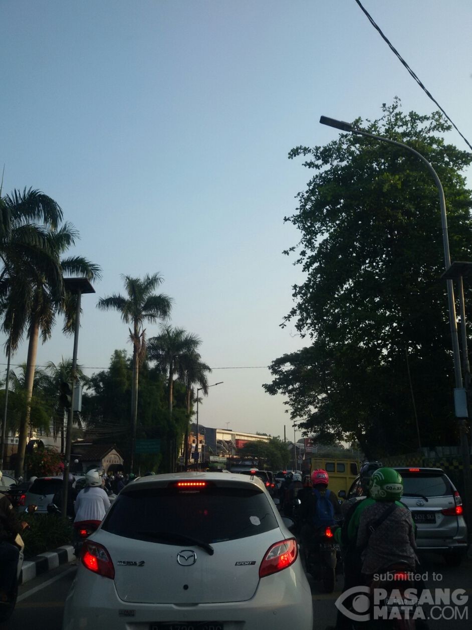Kondisi arus lalu lintas pagi ini di Jl. Lenteng Agung Raya ruas arah Stasiun Tanjung Barat tampak padat merayap