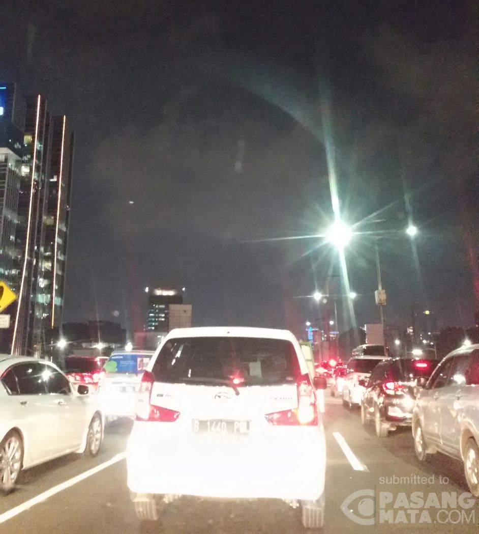Kondisi arus lalu lintas malam ini di Tol Dalam Kota Km. 10 ruas Palmerah arah Semanggi tampak padat merayap