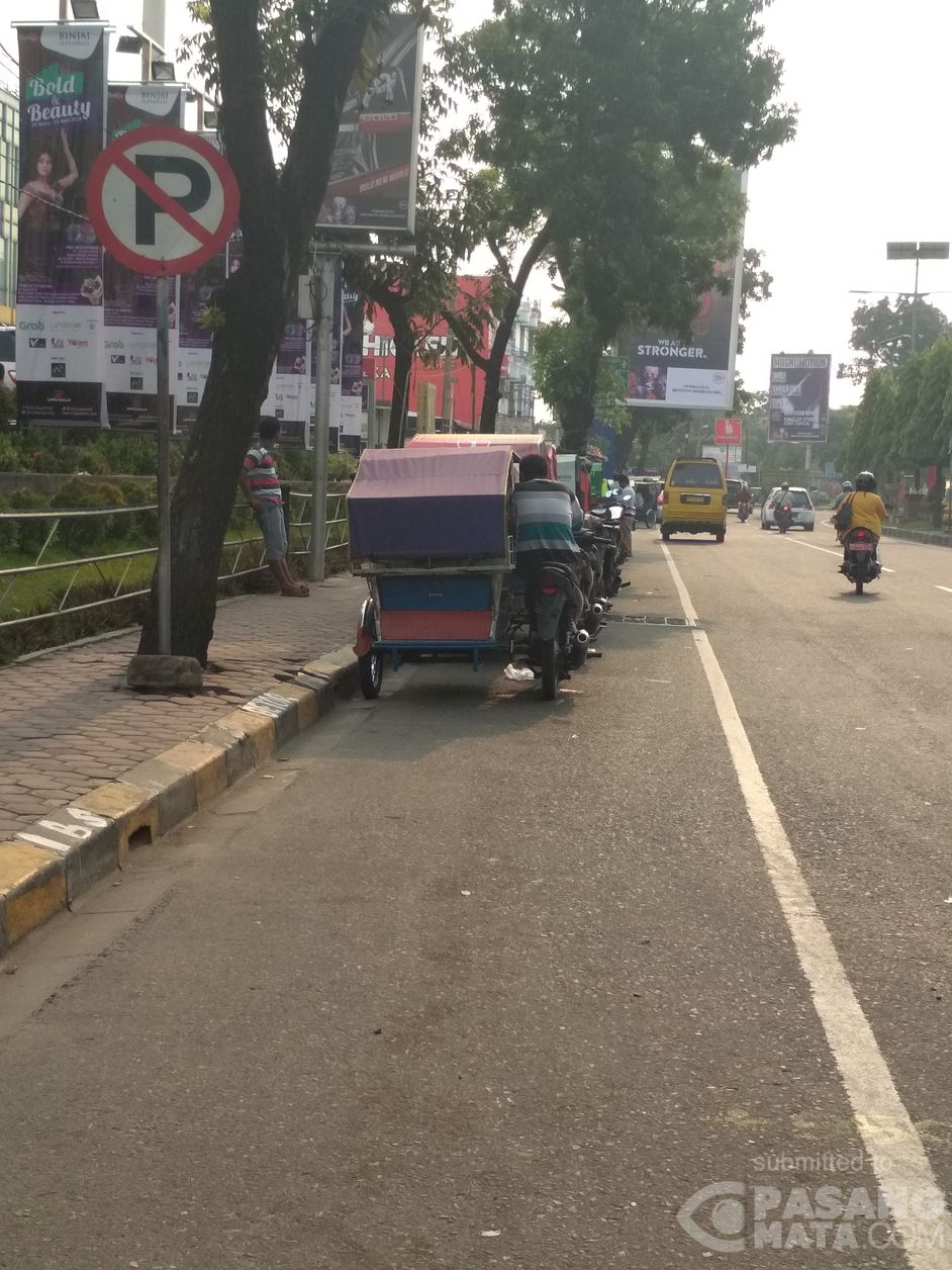 Sudah jelas ada rambu dilarang parkir, namun pengemudi betor ini nekat parkir massal ditempat yang dilarang. Kejadian ini terjadi dijalan Soekarno Hatta Binjai. Selain mengganggu kenyamanan, hal ini juga bisa menimbulkan bahaya bagi pengguna jalan lainnya.