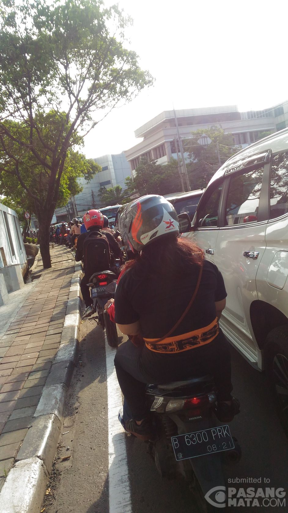Tampak padatnya arus lalu lintas di jalan Penjernihan 1 menuju Pejompongan Jakarta Pusat sore ini.