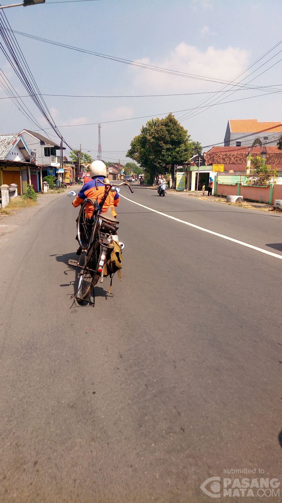 Ada sepeda naik motor, aneh kan kedengarannya? Tapi ini memang ada di Jalan Raya Lebo - Sidoarjo, tentu saja ini membahayakan si pengendara dan pengguna jalan lain, bisa dibayangkan seandainya tali ikatannya terlepas.
