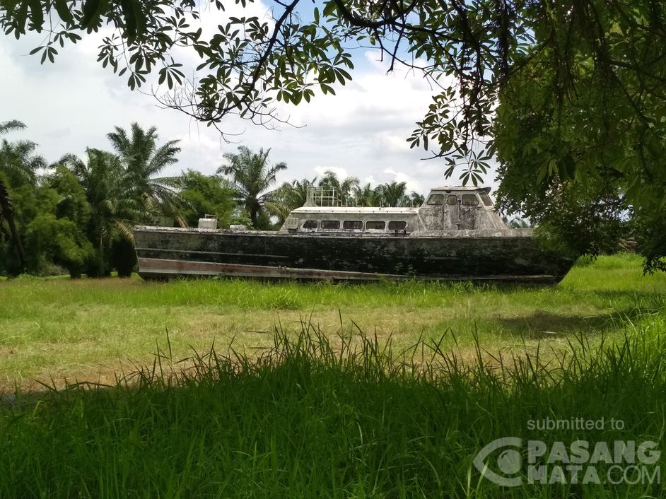 Ada kapal nyasar di lahan kosong di Perumahan Graha Helvetia Medan. Entah bagaimana ceritanya kapal tersebut berada di daerah tersebut, padahal letak perumahan ini jauh dari laut dan danau. Membingungkan.