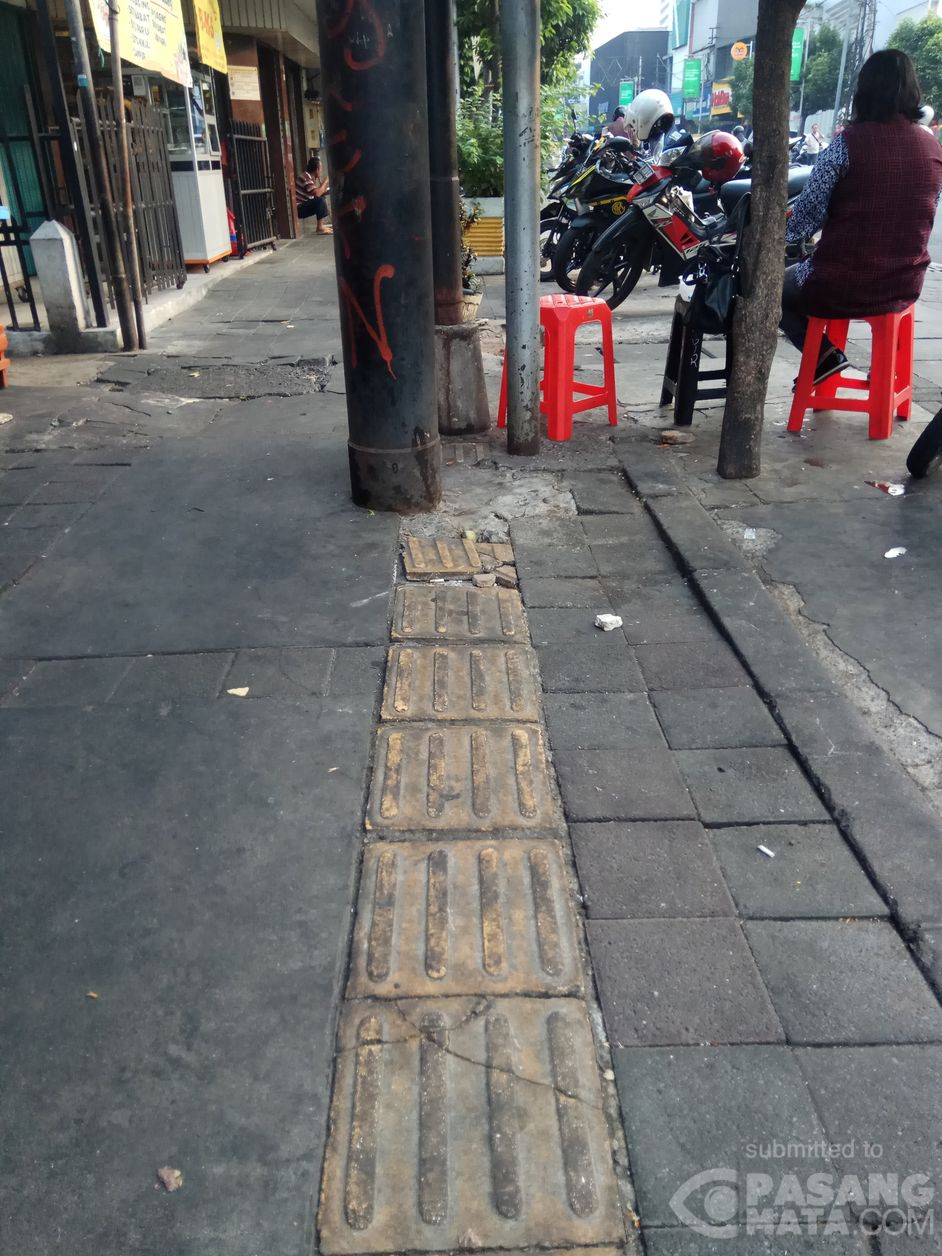 Jakarta - Jalur pedestrian khusus penyandang disabilitas ini di Jalan Sabang, Jakarta Pusat yang dibangun sejak satu tahun lebih ini banyak bersinggungan dengan tiang listrik dan terdapat beberapa titik yang sangat berbahaya bagi penyandang disabilitas, Rabu (1/8).
