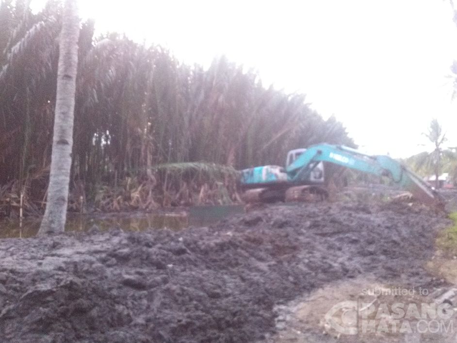 Kondisi terkini di Kali Cikidang, Desa Babakan, Kecamatan Pangandaran. Terlihat tumpukan lumpur yang dikeruk menggunakan alat berat cobecco.
