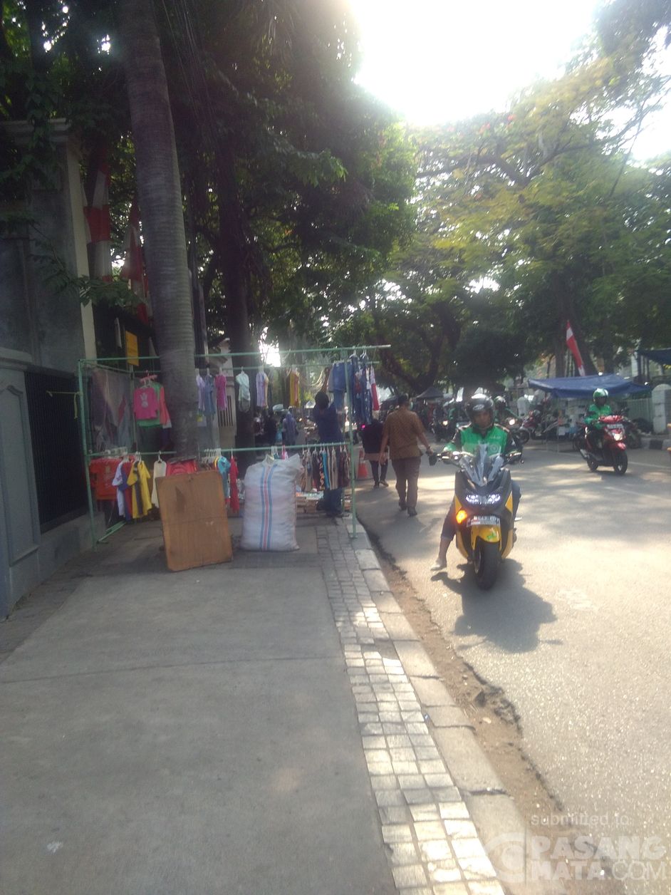 Pagi-pagi pejalan kaki sudah harus mengalah sama pedagang musiman ini yang memajang dagangannya pas di atas trotoar di Jalan Cut Meutia, Jakarta Pusat.