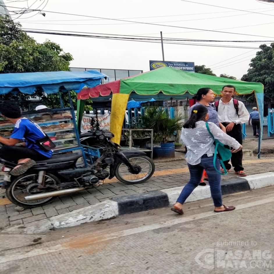 Trotoar di jalan Sisingamangaraja, Deli Serdang dikuasai oleh pedagang, tampak pejalan kaki pun harus mengalah karena haknya diserobot hingga berjalan di bahu jalan lintas seperti ini. Jalur khusus disabilitas pun dihabatnya seperti tampak pada gambar.