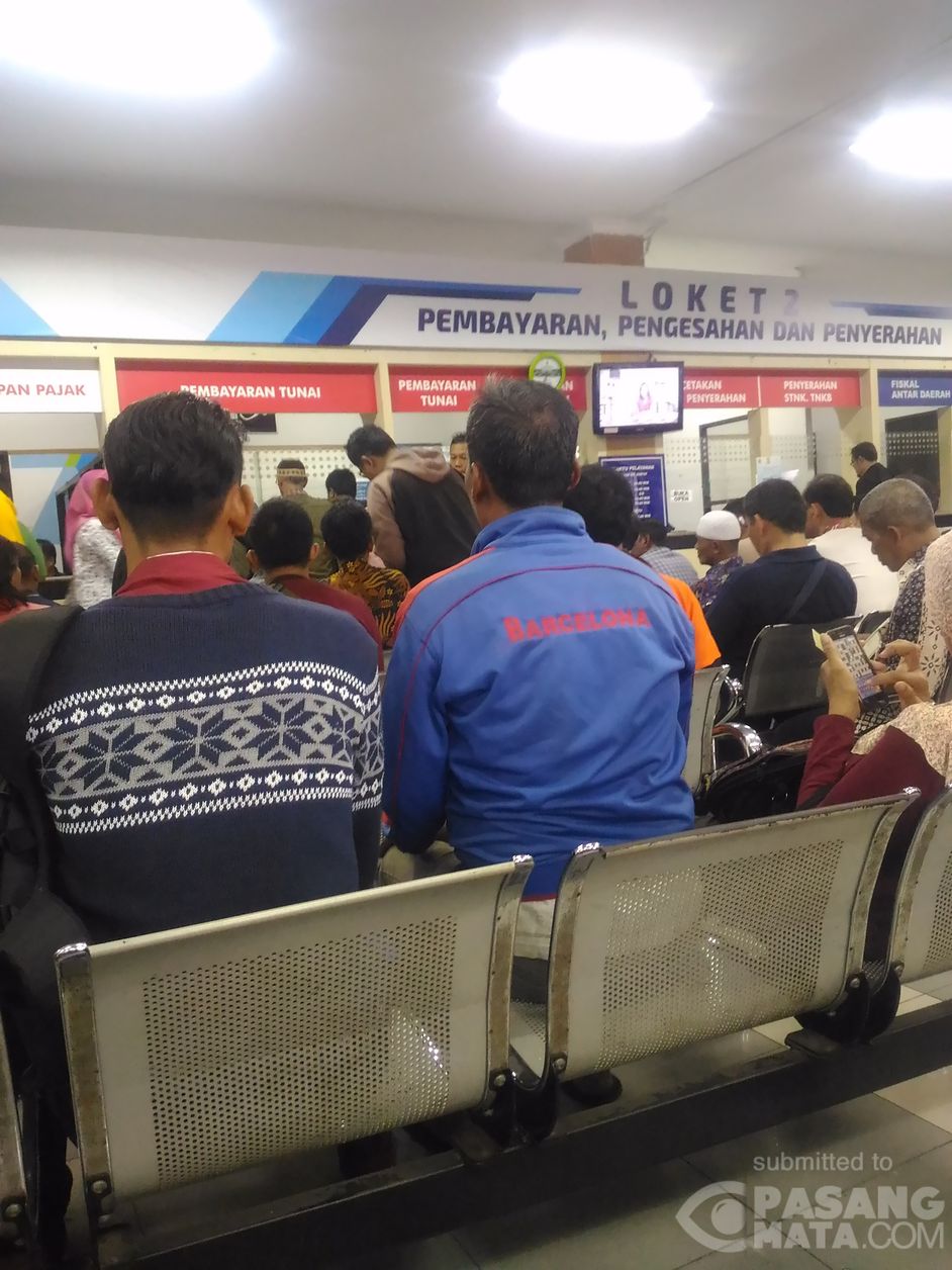 Hari sabtu, antrian pelayanan pajak kendaraan di Samsat Cinere Depok tampak panjang